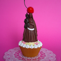 « Il s'agit, comme bien souvent dans mon travail de ramener la femme au premier plan. Je crois qu'on peut dire qu'il s'agit d'un travail assez féministe ! Dans cette optique, la sainte Vierge devient le symbole ultra reconnaissable et respecté de « La femme ». Bien que les statues que je récupère ne soient pas des objets uniques, puisque réalisées en série à l’origine, chacune a une histoire qui lui est propre. On peut imaginer… Elle a eu sa vie, investie d’un pouvoir mystique peut être, posée sur le buffet, à coté de la danseuse de flamenco, elle a vu le gigot du dimanche sur la table, et la balle du chien lui décapiter la tête et puis elle s’est dévalorisée, vendue pour quelques euros sur une brocante. En la récupérant, je change son destin, je la rends unique, d’une façon différente. Je fais mes expériences, mes associations, et m’amuse tout en essayant de donner du sens. Avec le temps, j’ai constaté les émotions que mon travail suscite. Certains peuvent être choqués, d’autres sont aussi émus, quelque soit leur croyance. Chacun possède une histoire personnelle avec la foi et de cela dépend leur réaction face à mes détournements. Mon travail n’a pas la prétention d’apporter des réponses, il soulève des questions, de foi, de femmes, de société, du XXIème siècle. Par exemple, dans le cas de Sainte Goku, « Je suis forte » est son message. Ici encore, il s’agit d’une statue de sainte vierge de récupération, restaurée puis transformée. Son allure particulière, avec ses cheveux en pointes, ses sourcils, ses vêtements orange, sa queue de singe, lui vient du personnage San Gokû, créé par Akira Toriyama qui lui donna cette apparence dans le manga Dragon Ball paru dès 1986, lui même inspiré par un roman chinois du XVIème siècle, intitulé « Le voyage en occident ». Le personnage de San Goku est pour moi le symbole de la Force, mentale et physique. La force doublement masculine, puisqu’il a en plus, une queue de singe, qui lui confère une force supplémentaire hors du commun. Parce que je vois trop de héros auxquels on attribue cette force, et trop peu d’héroïnes, je souhaite donner un élan. Je veux voir les femmes revendiquer la force. Et moi aussi, peut-être comme une prière, je désire être cette femme forte. Au japon, on écrit et on affiche, au temple par exemple, les idéogrammes (Kanjis) symboliques, qui expriment les souhaits à réaliser. C’est pourquoi j’ai remplacé le kanji d’origine qui était placé sur le vêtement de San Gokû, par un autre kanji qui se lit « Rin » (prononcer Line) et qui signifie la Force : 凛 » Soasig Chamaillard