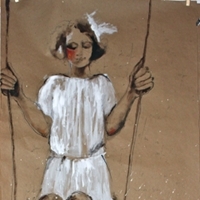 En avril dernier, j'ai trouvé dans une brocante un lot de photos. Clichés d'enfants issus de familles nombreuses, datés 1924 au dos. Au gré de ces photographies, je retrouve ces enfants de l'entre-deux-guerres dans des situations différentes ; je commence à m'intéresser à leur histoire... aux sentiments qui les animent, à leurs liens et affinités ou rivalités, en somme à tout ce qui fait une fratrie. Une envie de comprendre ou d'imaginer leur histoire et à travers eux de raconter l'enfance. Ainsi est née cette série. Viennent ensuite les recherches dans des carnets, les gravures, le besoin de leur associer des paysages, un territoire. Je ne crois pas que l'on puisse parler d'innocence pour ces enfants, au contraire, je crois qu'ils étaient déjà pleins de responsabilités. Les aînés en charge des cadets. C'est ce que je veux montrer avec ces mains très grosses, presque disproportionnées comme pour signifier leur âge adulte avant l’heure. L'enfance n'est pas qu'innocence. Tour à tour, inquiétude, colère puis tendresse et gaieté, nous la portons toute notre vie, d'où ces longues jambes qui entraînent vers et dans le monde des adultes tout en supportant celui de l’enfance. » Agnès Vandermarcq